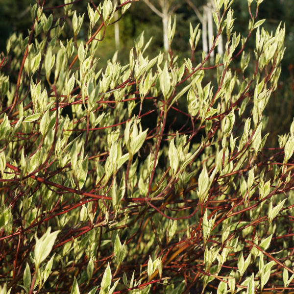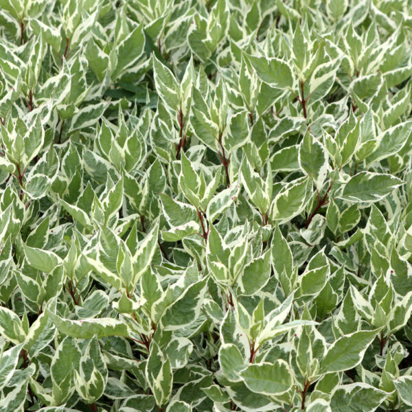 Jedna z niższych odmian derenia, pokrój zwarty, osiąga ok 1,2m œśrednicy. Liście zielone, z szerokim białym obrzeżeniem. Zimą dekoracyjne czerwone pędy. Polecany do małych ogrodów. Lubi podłoże dość wilgotne ale radzi sobie na wszystkich rodzajach gleby, stanowisko słoneczne lub półcień.