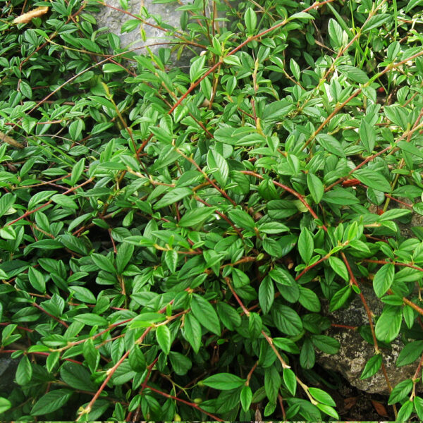 Szybkorosnący krzew z pędami ścielącymi się po ziemi, dorasta do około 0,5m wysokości przy szerokości około 2 metrów. Liście zielone, błyszczące, zimą pozostają na krzewie. Kwiaty białe, kwitnie w czerwcu. Owoce liczne, czerwone. Roślina tolerancyjna w stosunku do wszystkich rodzajów gleb uprawowych. Polecana jako roślina okrywowa.