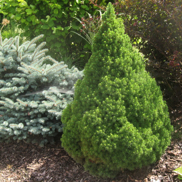 Wolnorosnąca, karłowa odmiana o stożkowym pokroju osiągająca do około 1,5 m wysokości. Świerk jest niezwykle atrakcyjny w okresie wiosennym, kiedy jego przyrosty mają żywozielony kolor. Roślina ma bardzo regularny, stożkowy pokrój i zieloną barwę cienkich, krótkich igieł. Dobrze czuje się na słonecznym lub półcienistym stanowisku i radzi sobie na większości przeciętnych, kwaśnych gleb ogrodowych. Roślina polecana jest do nasadzeń w przydomowych, skalnych , orientalnych oraz wrzosowiskowych ogrodach. Doskonale sprawdza się w tworzeniu kompozycji w towarzystwie innych, wolnorosnących iglaków. Może być uprawiana w pojemnikach i donicach.