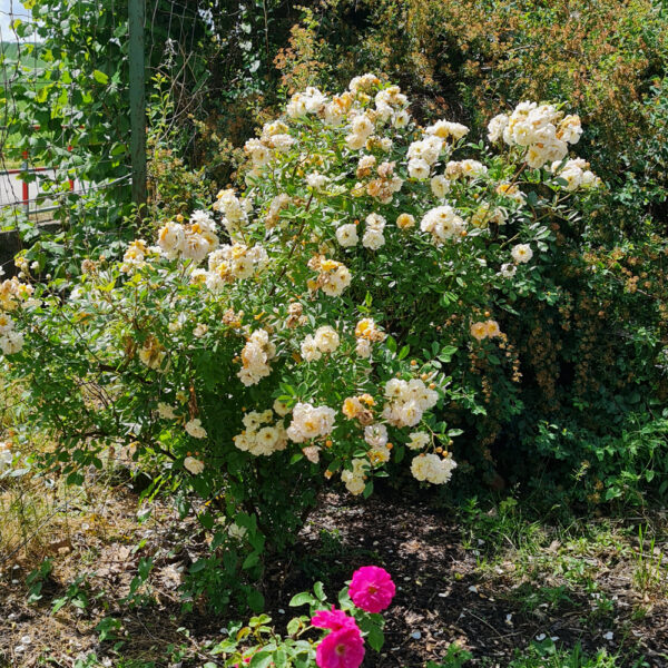 Róża pnąca osiągająca do około 3 m wysokości. Intensywnie pachnące kwiaty w dekoracyjny sposób zmieniają barwę, z ciemnopomarańczowego pąka w intensywny żółty kolor po rozwinięciu aż do bieli, kiedy znajdują się w okresie przekwitania. Roślina rozpoczyna obfite kwitnienie w czerwcu i powtarza je do jesieni. Mrozoodporny krzew dobrze czuje się na słonecznym oraz półcienistym stanowisku i w przepuszczalnym, żyznym podłożu. Róża sadzona przy podporach tylko się na nich wspiera, nie wspina. Roślina polecana jest do nasadzeń w przydomowych ogrodach, przy większych kratach, bramkach oraz altanach.