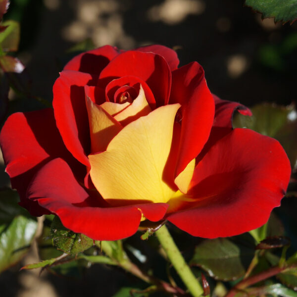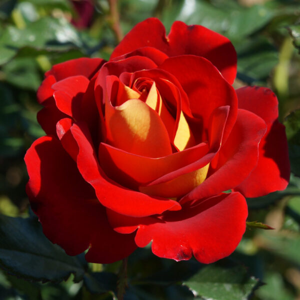 Kompaktowy krzew o wyprostowanym pokroju, osiągający do około 1,5 m wysokości. Liście róży są niezwykle błyszczące, jasnozielone, pięknie komponują się z dekoracyjnymi kwiatami w dwóch kolorach. Żywo czerwone od góry i musztardowe pod spodem płatki zebrane są w pełne kwiaty wydzielające słodki, lekko jabłkowy zapach. Roślina dobrze czuje się na słonecznym stanowisku. Krzew polecany jest do nasadzeń w przydomowych ogrodach w miejscach wyeksponowanych, na rabatach, może być uprawiany w pojemnikach oraz donicach jako ciekawy akcent kolorystyczny otoczenia.
