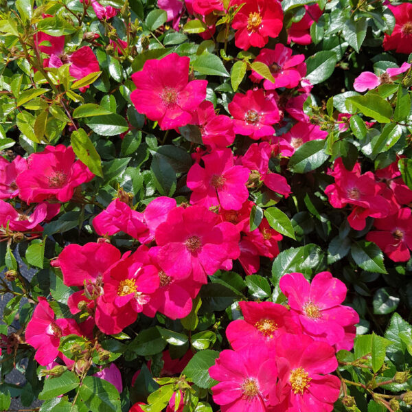 Róża okrywowa osiągająca do około 0,6 m wysokości. Roślina ma ciemnozielone, błyszczące liście oraz płaskie, delikatne kwiaty w kolorze intensywnego, ciemnego różu. Krzew dobrze czuje się na słonecznym stanowisku, jest bardzo łatwy w uprawie. Róża doskonale sprawdza się do nasadzeń na rabatach w formie okrywowej. Obfite kwitnienie sprawia, że roślina może stanowić dekoracyjny akcent kolorystyczny przestrzeni ogrodu.