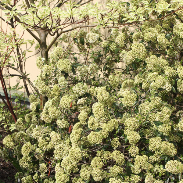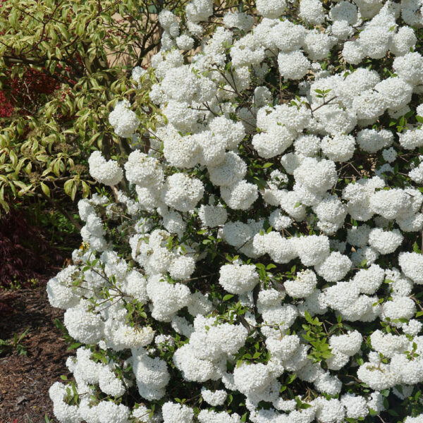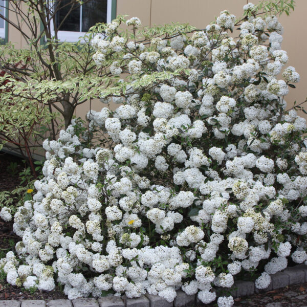Krzew o kulistym pokroju, osiągający do około 1,5 m wysokości. Roślina ma ciemnozielone liście oraz czysto białe kwiaty zebrane w kuliste kwiatostany, wydzielające delikatny zapach. Kalina dobrze czuje się na zacisznym, osłoniętym, słonecznym lub półcienistym stanowisku oraz próchniczej glebie. Krzew polecany jest do nasadzeń w przydomowych ogrodach, szczególnie w grupach.